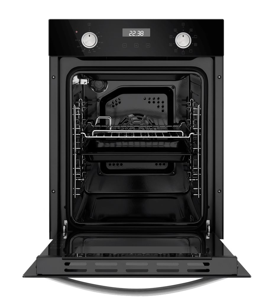 Компактный электрический встраиваемый духовой шкаф с максимальным объемом для своих размеров. Фронтальная панель выполнена из высококачественного жаропрочного тонированного стекла. Комбинированное управление с сенсорным дисплеем и поворотными ручками PUSH PULL.1