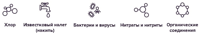 | Очищает воду от | отфильтровывает песок, ржавчину; впитывает хлор; отфильтровывает самые мелкие механические примеси |