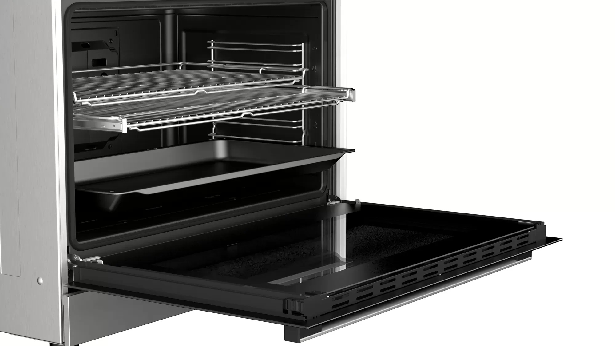 Полностью стеклянная дверца кухонной плиты позволяет легко контролировать приготовление пищи. Вы можете легко снять внутреннее стекло двери, что позволяет легко его очистить.
