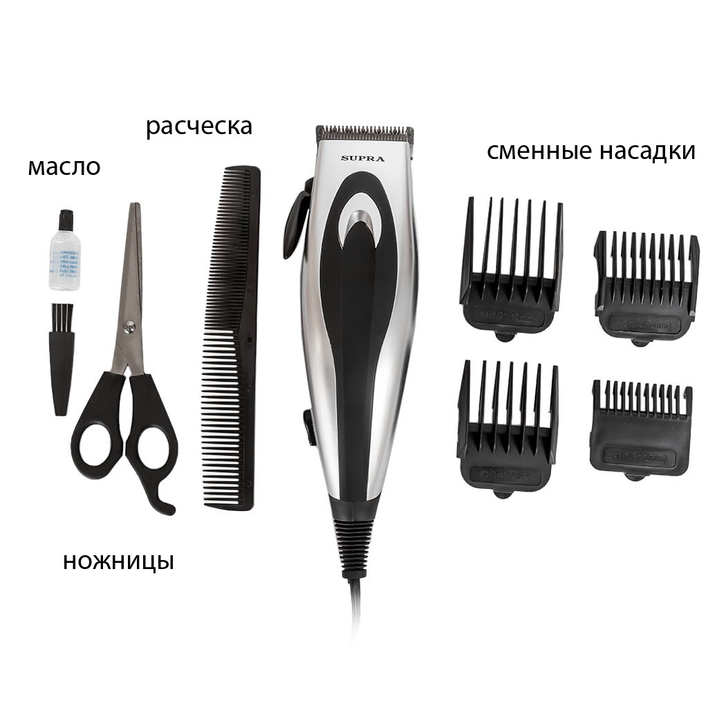 | В комплекте | машинка для стрижки, гарантийный талон, инструкция на русском языке, сменные насадки 3/6/9/12 мм, щеточка для чистки, масло для смазки, ножницы, расческа |