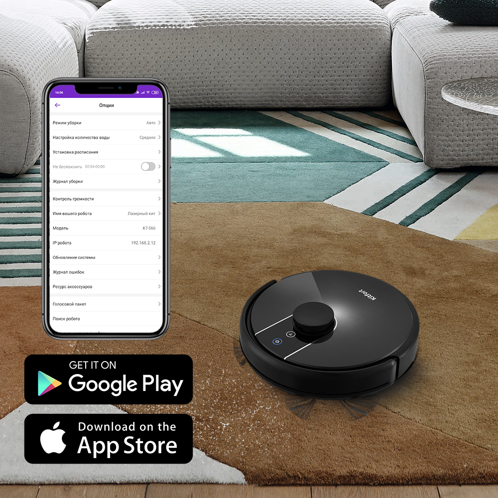 Мобильное приложение RoboKit предназначено для управления стильным и современным роботом-пылесосом Kitfort КТ-566 со смартфона по сети Wi-Fi. Находясь вне дома, вы можете дистанционно запустить, поменять режим, посмотреть карту уборки помещения и т.д