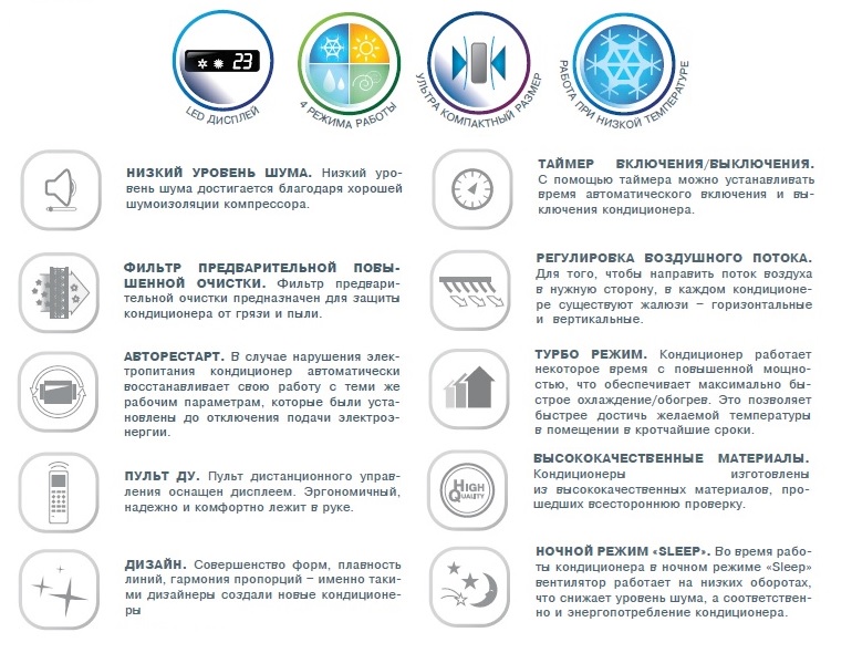Основные режимы | охлаждение/обогрев |