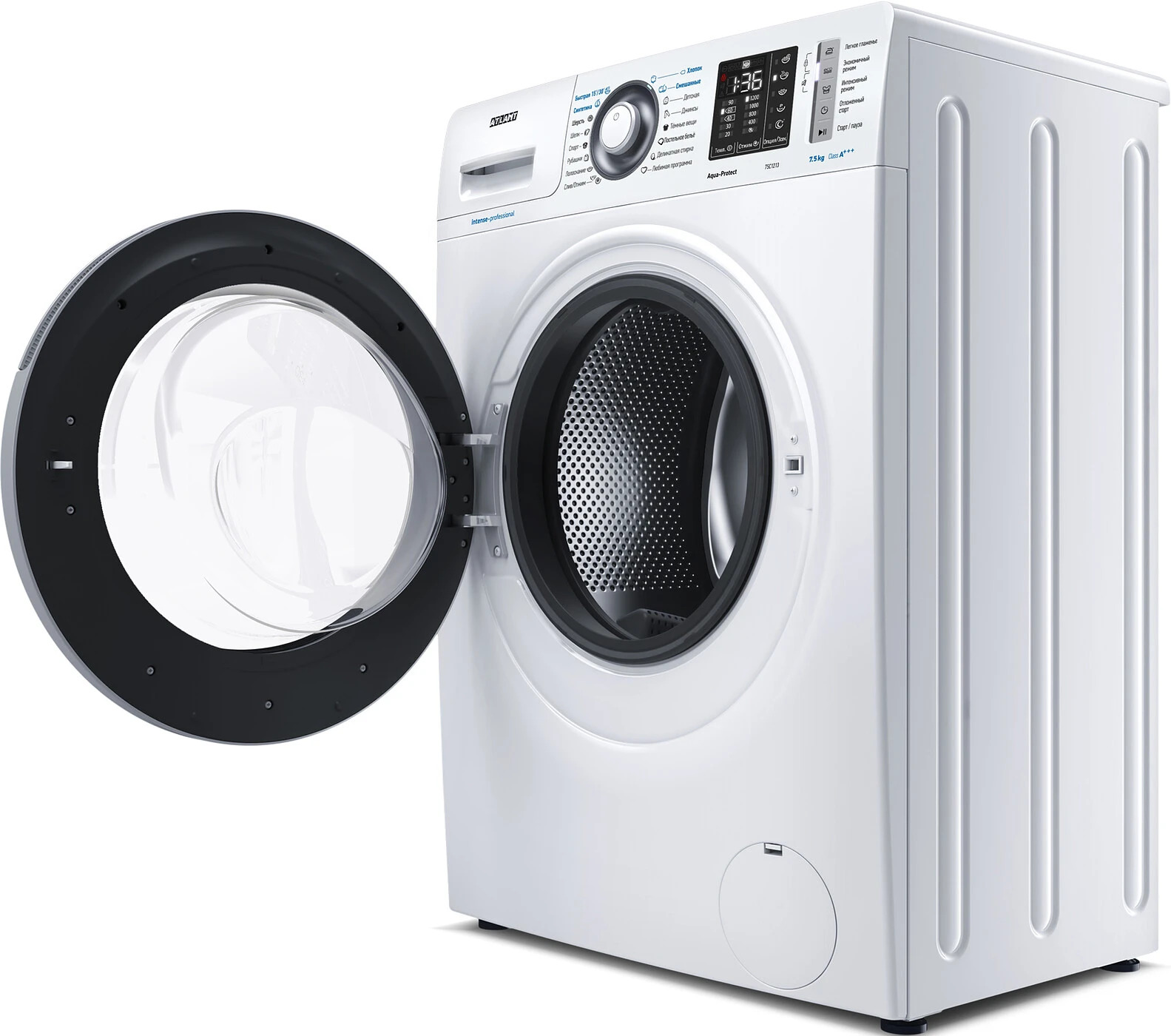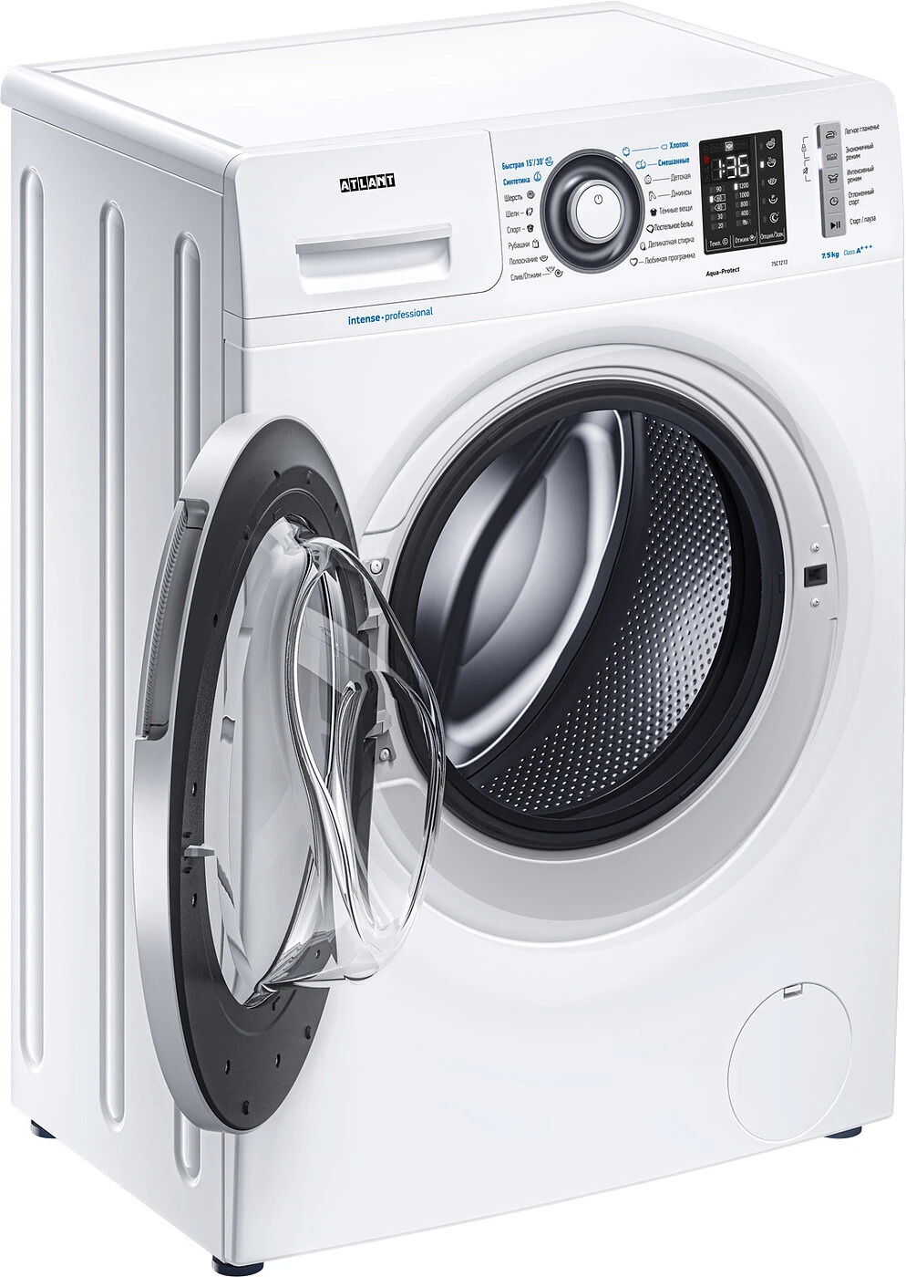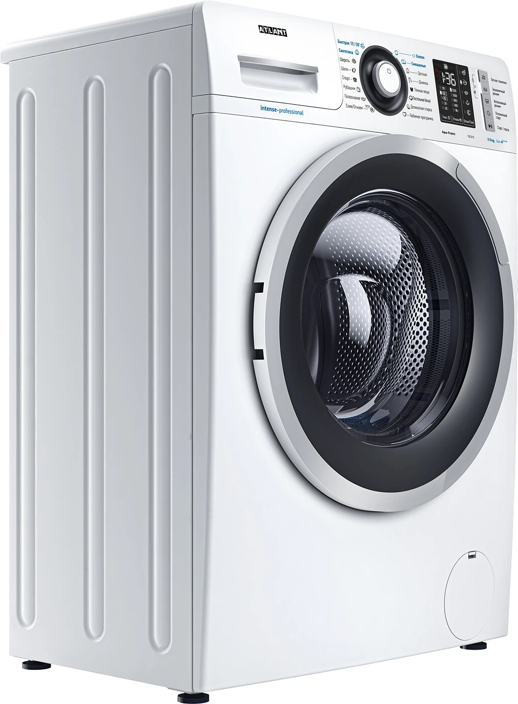 Новая стиральная машина ATLANT серии INTENSE PROFESSIONAL имеет уникальный дизайн, который прекрасно дополнит любой интерьер своим внешним видом. С помощью новых сенсорных технологий достаточно легкого касания для выбора функций и программ. Светодиодные индикаторы и сегментный дисплей машины размещены на панели управления под небольшим углом, что облегчает визуальное восприятие отображаемой информации о работе машины. Благодаря интеллектуальным программам она не только интуитивно понятна в управлении, но и обеспечивает превосходные результаты стирки при низком потреблении воды и электроэнергии.