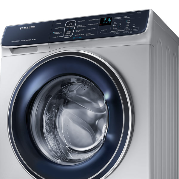 Система искусственного интеллекта Bixby (на платформе приложения SmartThings ) позволяет управлять процессом стирки в удаленном режиме. Предустановленные варианты программ стирки, например, рецепт стирки рекомендует вам оптимальные циклы стирки, программа планировщик стирки помогает оптимизировать расписание стирки, а режим самодиагностики обеспечивает диагностику неисправностей в удаленном режиме. За быстрый выбор необходимых параметров работы отвечает функциональный дисплей и поворотный переключатель