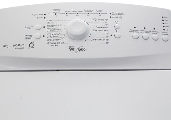 Стиральная машина Whirlpool AWE 6080 c вертикальной загрузкой отвечает всем требованиям к заботе о белье. Машинка с электронным управлением способна качественно и деликатно выстирать за один цикл до 6 килограмм белья. К тому же, эта небольшая помощница значительно экономит пространство. Ширина данной модели всего 40 см. Для выбора программ предусмотрено электронное управление при помощи поворотных ручек и кнопок.