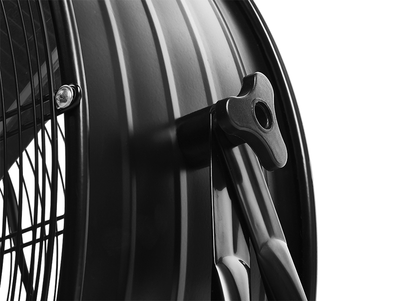 Особенности | Алюминиевые лопасти Корпус типа «Барабан» для создания направленного воздушного потока Колесное шасси и ручки для удобства транспортировки |