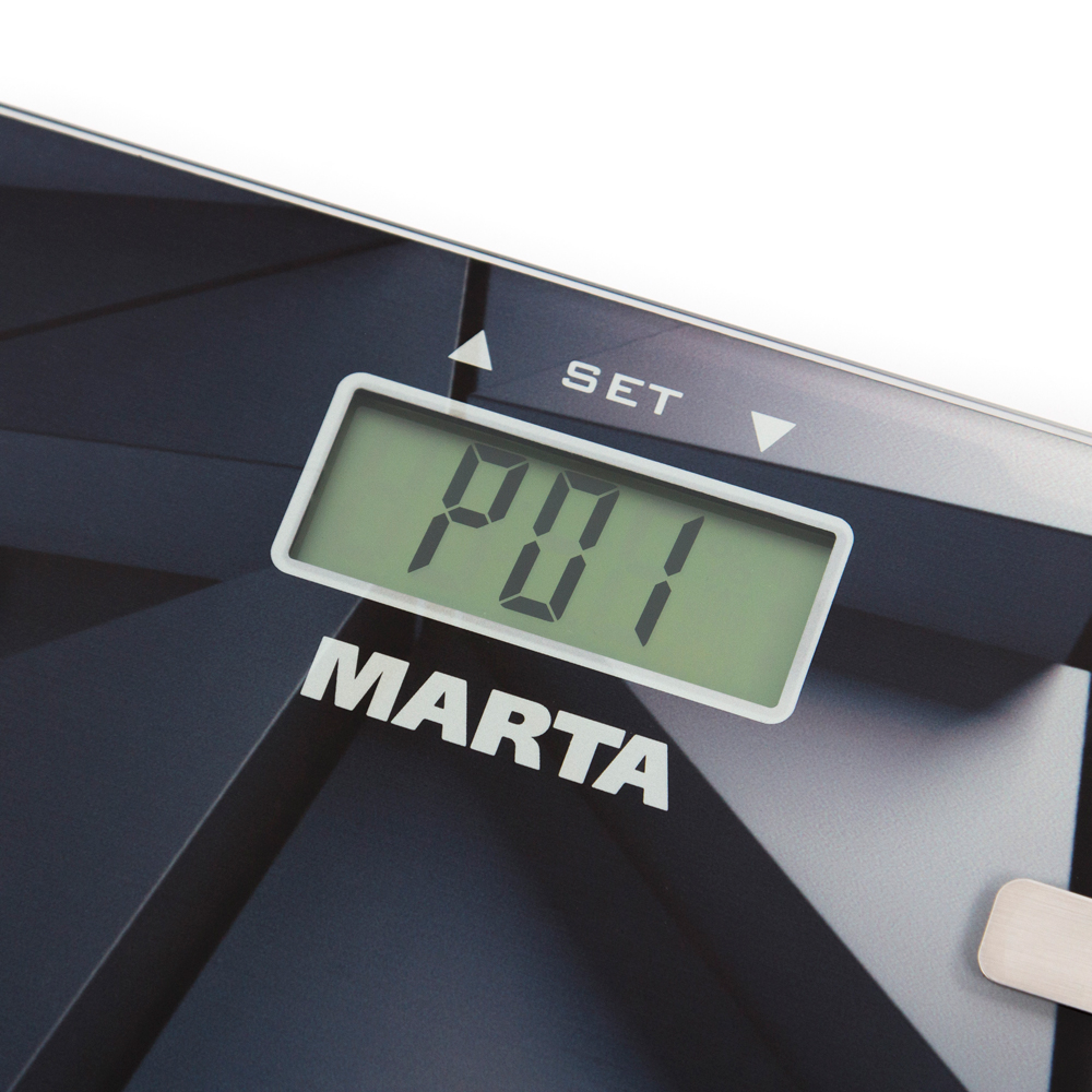 Напольные весы MARTA MT-1675 – диагностические весы для измерения уровня жира, воды, мышечной и костной массы.
