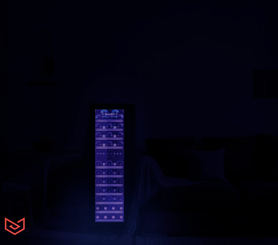 Корпус MV53-KBF2 выполнен из стали окрашенной в чёрный цвет, стекло с шелкографией полностью покрывает дверь. Современная технология освещения позволит Вам в любое время эффектно продемонстрировать Вашу винную коллекцию гостям. Каждая деталь модели гармонично дополняет друг друга, делая винный шкаф универсальным под любые стили интерьера.